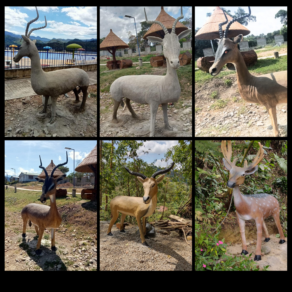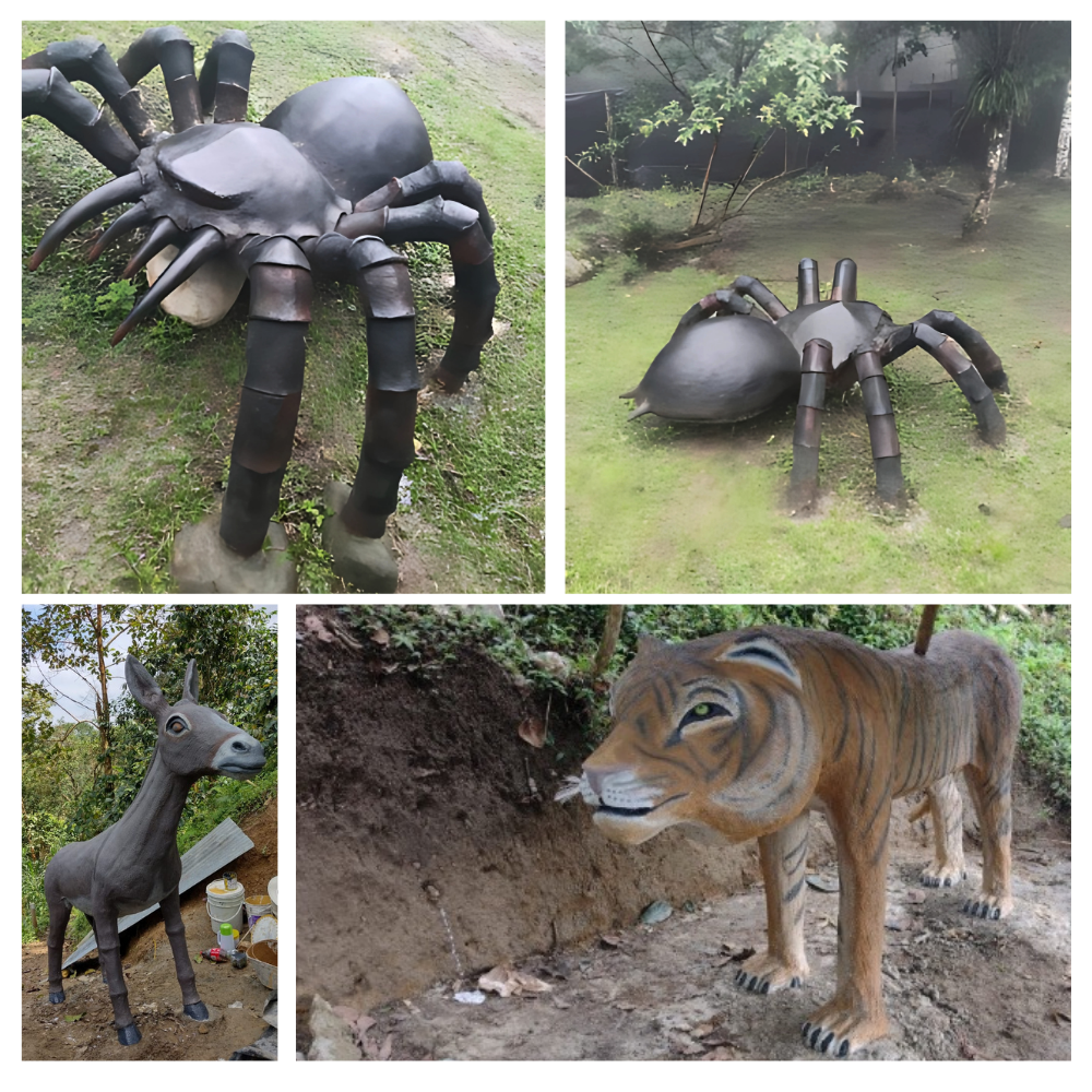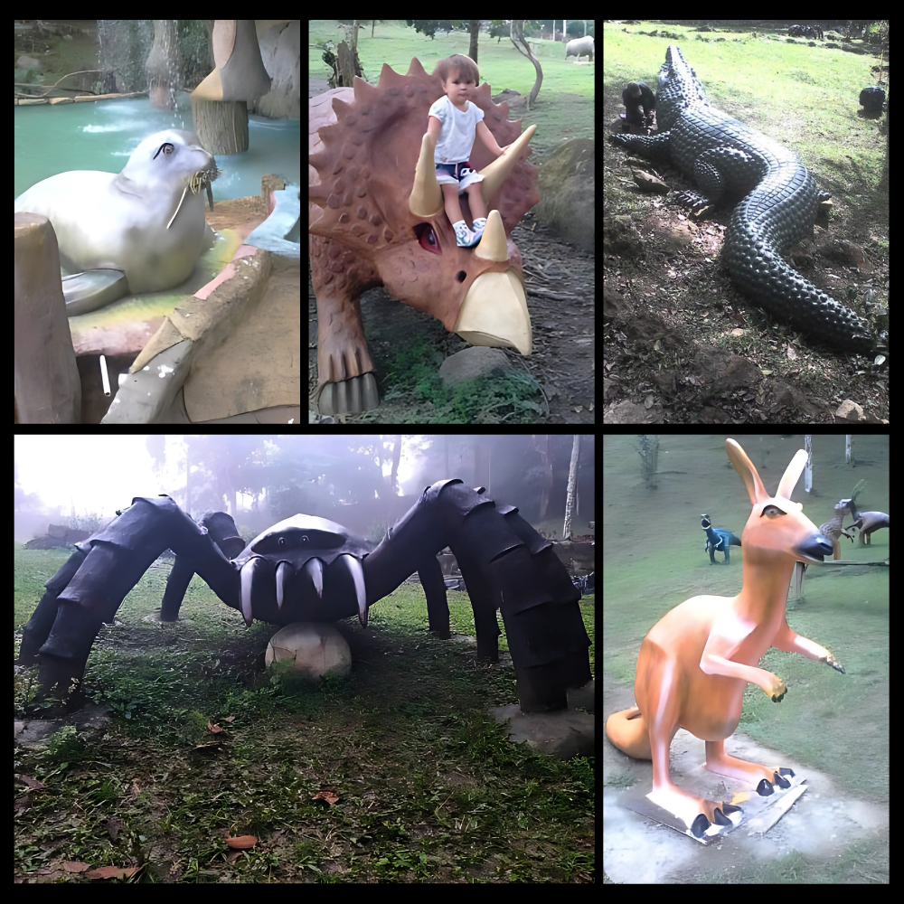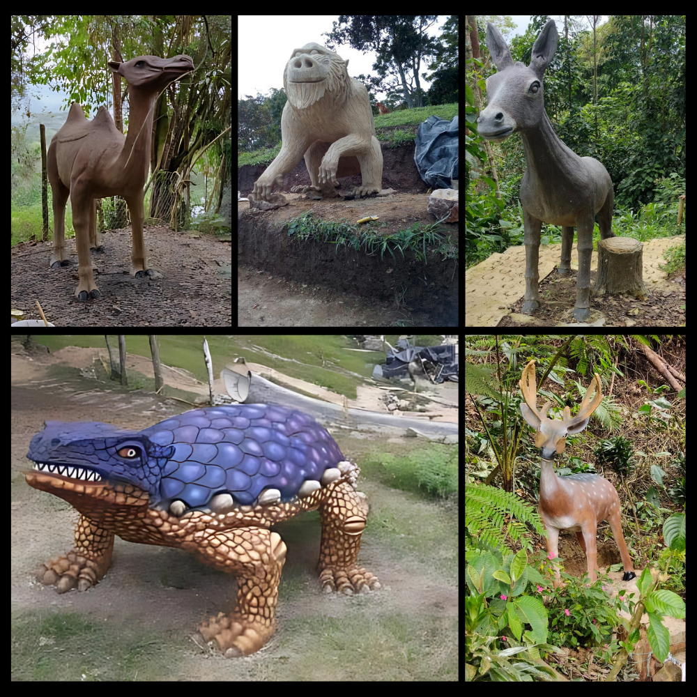 Cada figura está elaborada en cemento y otros materiales resistentes, lo que garantiza una larga vida útil en exteriores. Estas esculturas de animales combinan arte, durabilidad y funcionalidad, siendo una opción perfecta para tematización de espacios naturales, áreas recreativas o exhibiciones educativas.